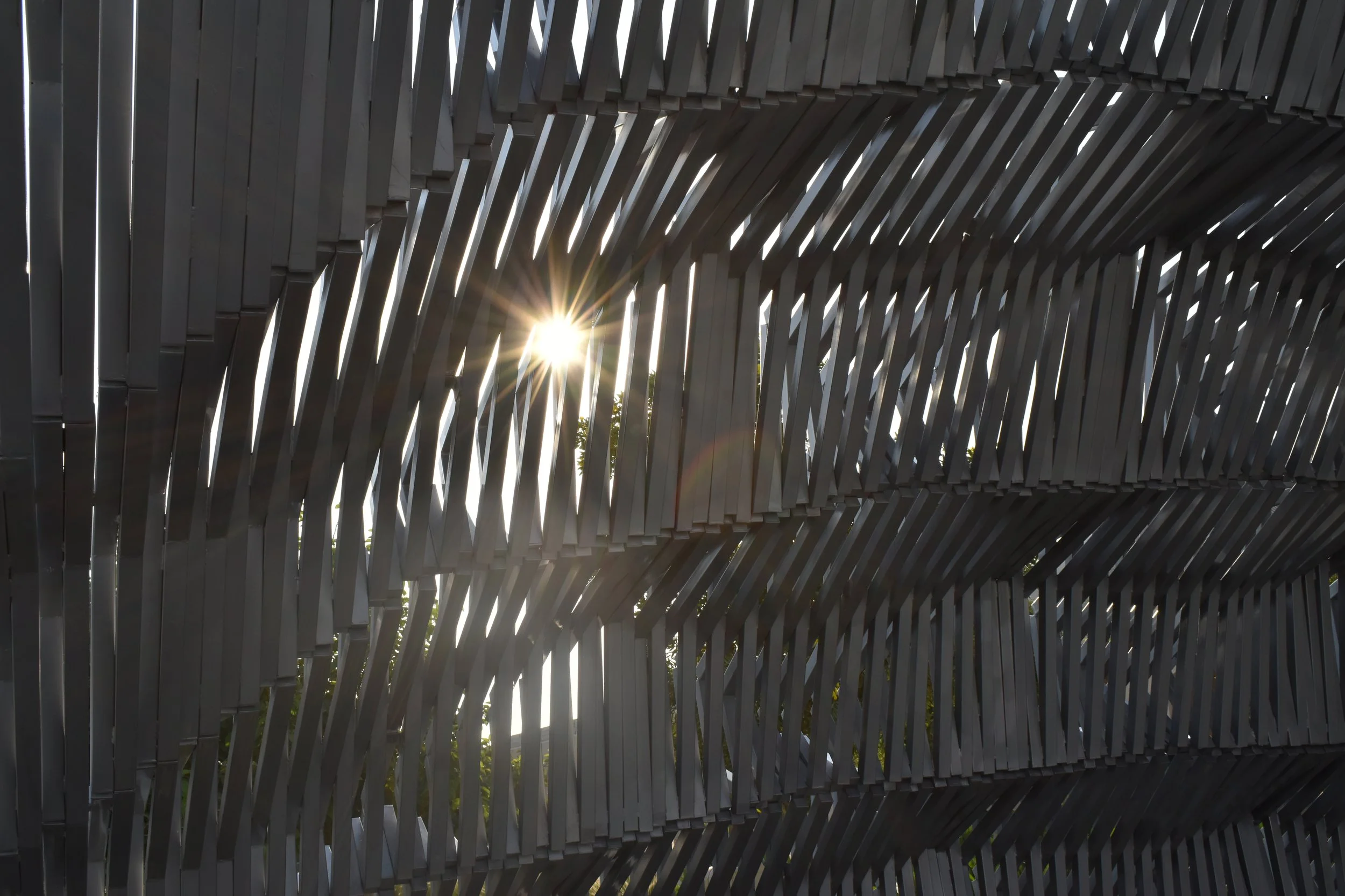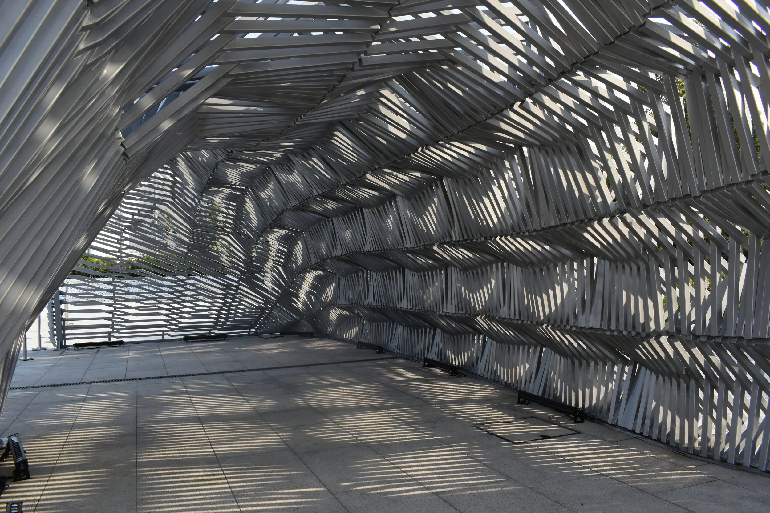 As a celebration of the palm tree heritage, the Faseela - - فسيلة * pavilion explores the leaf and trunk elements through a modular approach. The proposed pavilion is an aggregative structure that portrays the qualities of a palm leaf frond. The wood-based assembly is formed by alternately rising timber planks repeated to create an overall step-like texture. Latticework is then achieved reflecting the leaf essence that is captured through a moiré optical illusion. The pavilion’s spatial experience and unique geometry encourages a dialogue between the indoors and its surrounding landscape.